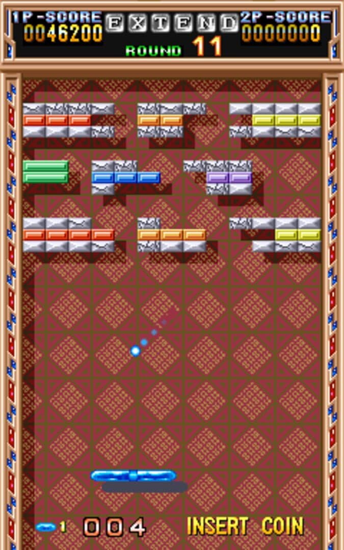 A ball travels across the screen, bouncing off the top and side walls of the screen. When a brick is hit, the ball bounces away and the brick is destroyed. The player loses a turn when the ball touches the bottom of the screen. To prevent this from happening, the player has a movable paddle to bounce the ball upward and back into play.