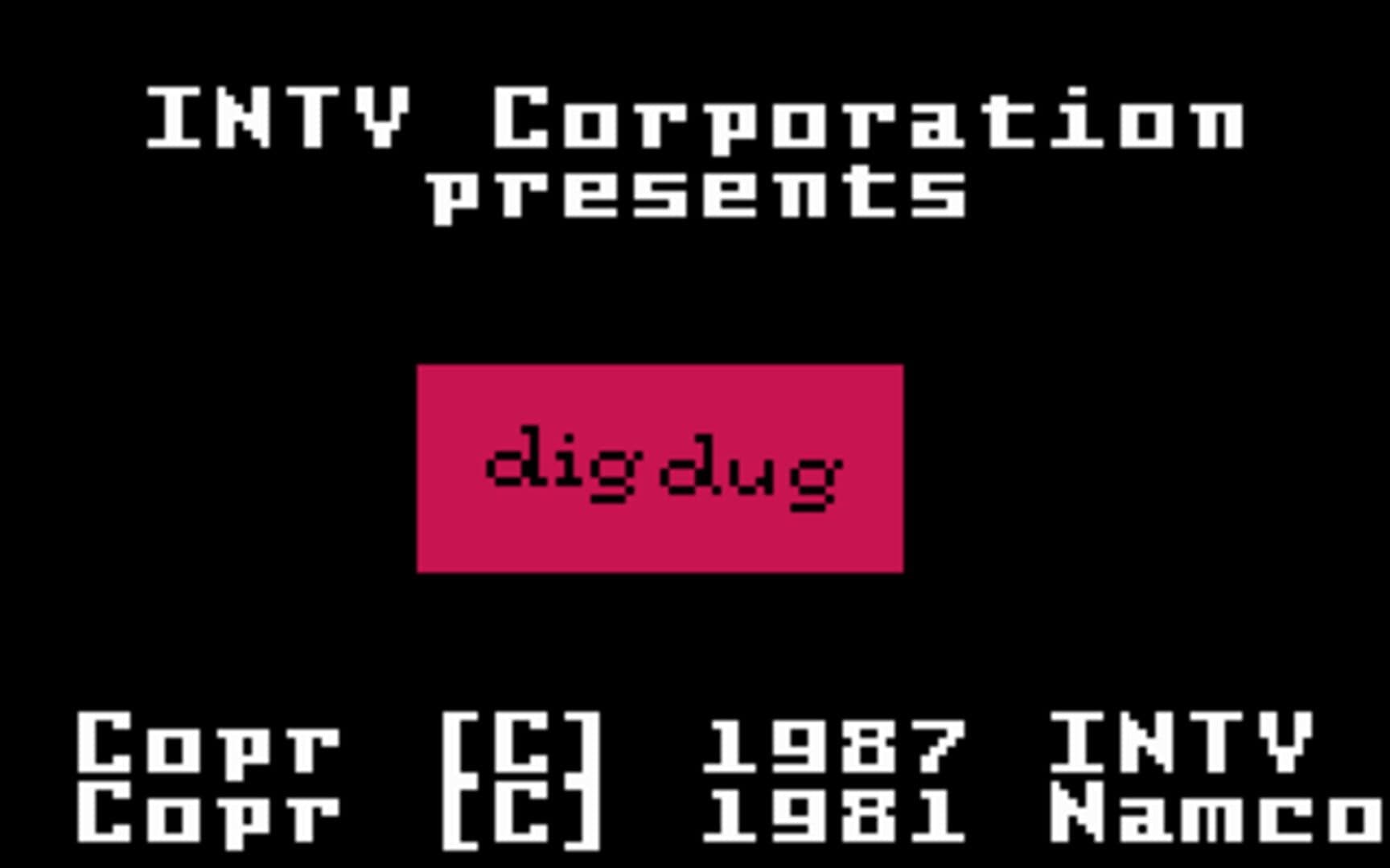 Dig Dug is a 1-2 player arcade game in which you have to use your shovel to dig your way through the earth. Stopping you from doing this are two monsters, called Pooka and Fygar, who will continually chase you around. The only weapon that you carry is an air pump, which you can use to inflate the monsters to the point where they explode. (if you start to inflate them but stop doing so, the monsters will get turned back to their normal selves). Furthermore, rocks are scattered throughout the earth, and you can use these rocks to squash them. If the monsters do not find you for several seconds, they will eventually get turned into ghosts, which can walk through the earth. They are invincible and cannot be killed. From time to time, vegetables will appear in the center, and you can get these for points.
