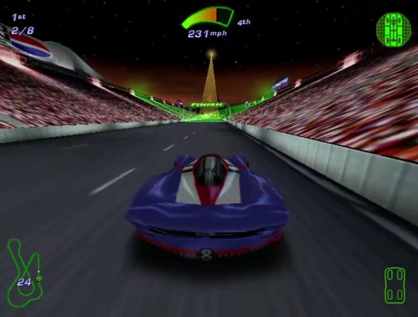 Jeff Gordon XS Racing is an action/arcade racing game with fierce competition. The vehicle designs are just as racy as the look and feel of the stock car tracks. Reach up to 300 mph and challenge yourself around steep banks and corkscrew loops. Jeff Gordon coaches you through the preliminaries, but the final test of your driving abilities is against Jeff Gordon himself.