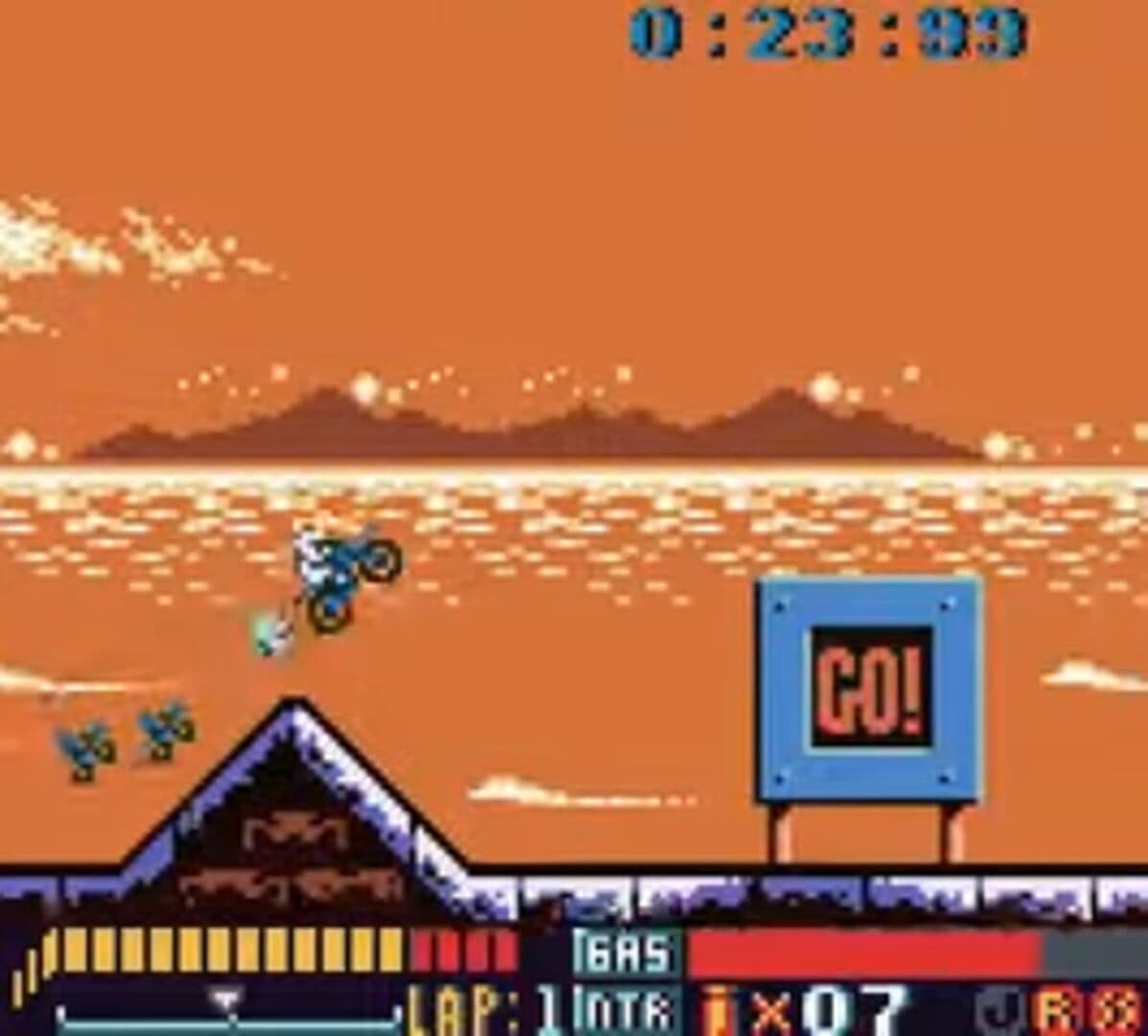 The action of motocross comes to the Game Boy Color with MOTOCROSS MANIACS 2. Hop on a motorcycle and hit the bumps, jumps, and loops of each track. Try to earn the fastest time in the Time Trial mode or take on five different tracks in the Championship mode. No matter how you play, there are power-ups scattered throughout the tracks including nitros, mini riders, jets, gasoline, super suspension, speed, and radials. If you don't like any of the 10 packaged tracks, you can create your own with the Track Editor option. There are a total of 255 obstacles and 32 different items that can be placed on any of the three tracks that you create. Once you have a masterpiece, share it with a friend via a link cable. Get motocross action with MOTOCROSS MANIACS 2.