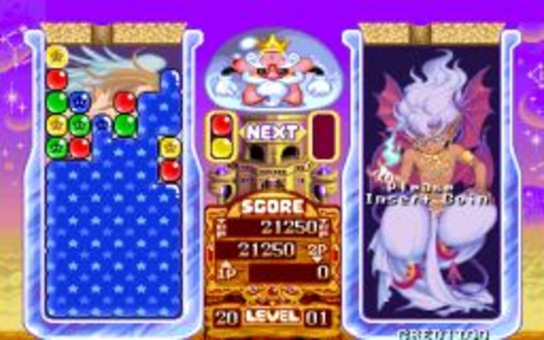 Pnickies is a Tetris-style puzzle game, where the objective is to match coloured balls of the same colour, causing them to disappear. Balls which are the same colour link together on contact to form large shapes, and must be carefully stacked to allow access to other colours. The playfield you can see consists of six columns twelves rows high. The thirteenth row which is not visible is also used for storing balls and is counted for scoring purposes. The balls drops from the top of the screen in linked pairs in the third column, and can be of two types, those with stars and plain. The plain ones simply connect with those of the same colour, but any single colour with two stars or more in it will cause the whole linked colour to disappear and award you points.