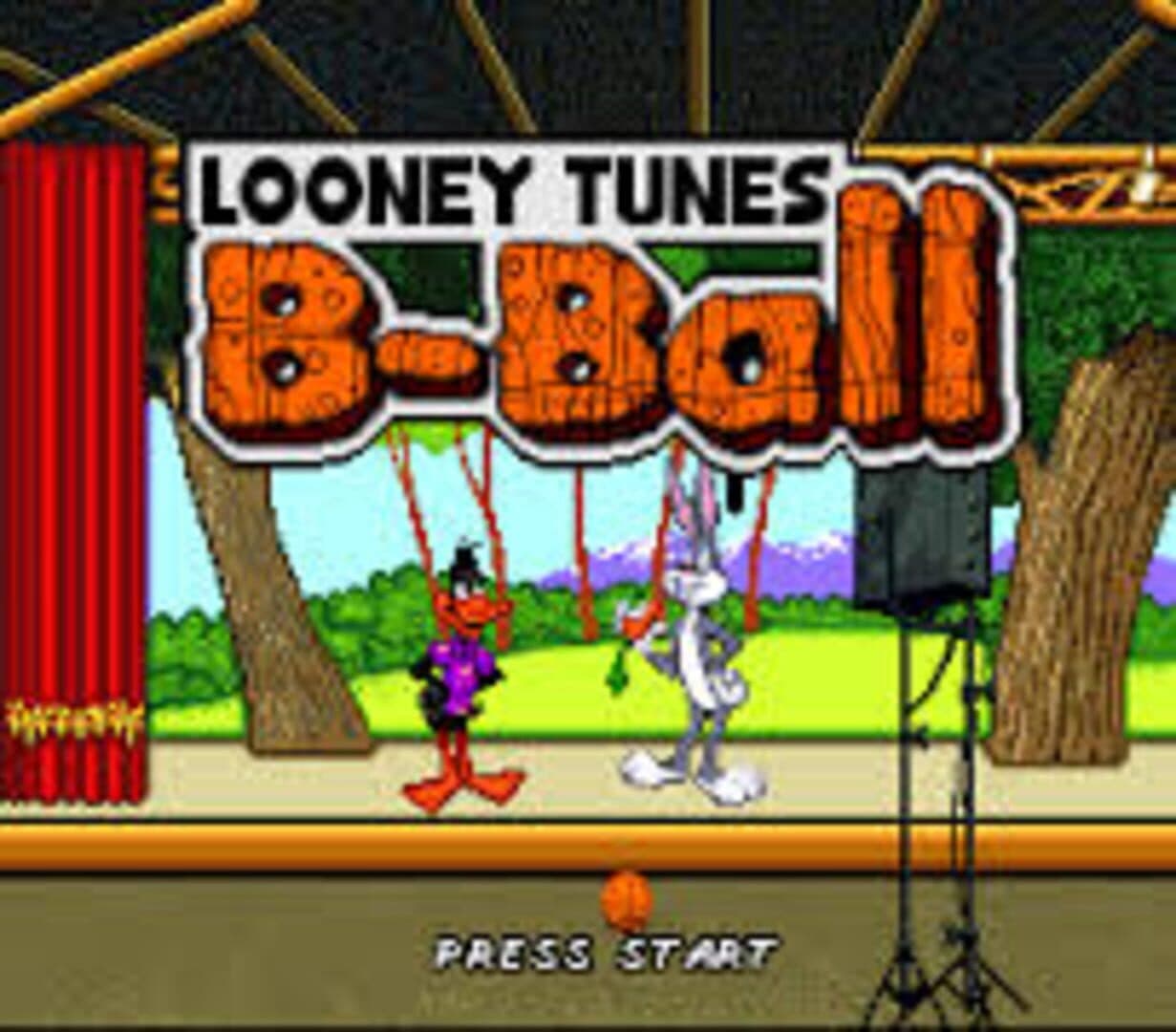 Looney Tunes B-Ball is a 2-on-2 Basketball game, similar to the more well known NBA Jam. However, Looney Tunes is much more informal and silly, though this level of silliness is set by the player via the Wackiness Meter on the main menu. Players choose their teams from the likes of: Bugs Bunny, Daffy Duck, Elmer Fudd, Wile E. Coyote, Tasmanian Devil, Sylvester, Yosemite Sam and Marvin Martian. Each player has unique statistics for their shooting, 3-pointers, defense, stamina and speed. Once on the court, the player can pass the ball, shoot the ball, grab a burst of speed or unleash a special defensive ability or a special offensive ability.. These abilities include cream pies, time bombs, sticks of dynamite and other fun toys from the ACME Corporation. Offensive Abilities must be "bought" by collecting gems and other items which occasionally show up on the basketball court.