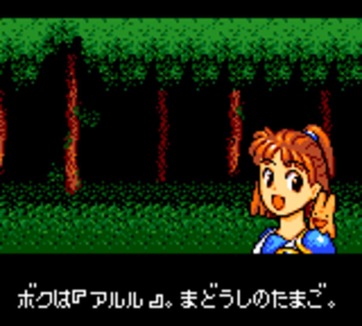 3 takes place not too long after 2. Rulue recognizes Carbuncle and becomes upset - she is convinced that Satan chose to marry Arle. Arle is clueless about her jealousy and thus takes her casually, but Rulue summons Minotauros to chase her into a forest. Arle manages to escape out of the forest dungeon but her hands are torn and bloody due to frostbite caused by overusing 'Ice Storm'. She finds a pharmacy in town and requests the merchant for medicine that can rid of the frostbite. However, he tells her that the raw materials to make it are in Mokemoe Labyrinth, which has recently been rampant with monsters. Rulue sends Minotauros to fight Arle, but Arle defeats him, ending the game. This plot-point was entirely removed in the Game Gear version and replaced with an entirely different story. A frog follows Arle around on her adventure, you get a new pink armor along with a powerful staff, fight an Egyptian Guardian, Carbuncle gets sick, Arle travels to space to cure him, Minotauros is only the third boss (the second being a super form of Draco Centauros) and Rulue is the final boss instead. After Arle defeats them, she figures out that Rulue was the one who had unleashed monsters throughout Mokemoe Labyrinth. Rulue claims that the area belonged to her and that the townspeople were roughing it up. Arle continues to object that people cannot gain the raw materials, and Rulue shows no care for it. Instead Rulue tries to make a deal, that she goes to the same Magic School as Arle and learn to be a wonderful mage and impress Satan. Agreeing to the deal, Rulue orders Minotauros to get up and prepare to leave. Arle's frostbite is cured and says "Two dogs and two men, were heading to the Magic School". As she, Rulue, Minotauros, and Carbuncle look in one direction. Thus ending the trilogy. In the Game Gear version, though, Rulue still is angered by her defeat. The frog appears, turning out to be Satan the whole time, and tells them that he wanted Arle as his wife and everything was a plan of his. They both send him flying, unimpressed and annoyed. The ending remains the same except without Carbuncle and Minotauros.