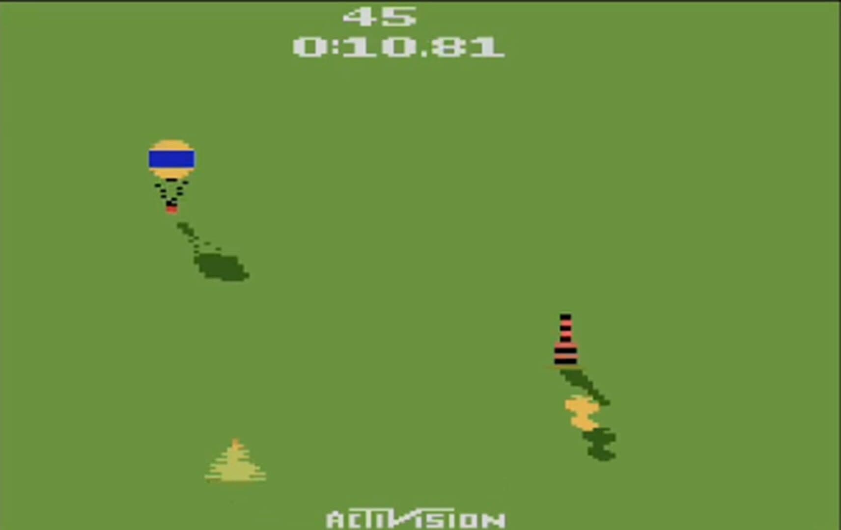 You control a small plane and have to fly slalom around a preset amount of pylons. You have to pass the red pylons on the right side and the blue ones on the left side. Missing a pylon will result in a three second penalty. Flying into the pylons, trees or hot-air balloons will cost you time as well. There are five different game modes: The first four game modes only differ in terms of the number of pylons you have to pass (25, 50, 75, 99). In th fifth game mode you still have to pass 99 pylons but they are placed along the course randomly. You can also change the difficulty level from easy to hard which will place obstacles like trees either directly in your line of flight or out of your way.