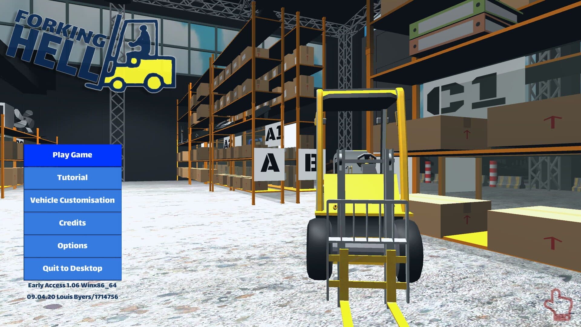 Forking Hell is a single player 3D casual arcade-simulation game where the player guides a forklift vehicle around a virtual warehouse and completes customer orders over the working days. The chaos of the Rumba-Bots combined with the semi-realistic physics helps give an arcade style to the simulation genre. Forking Hell is built with controller or keyboard/mouse input to support various play-styles and preferences.