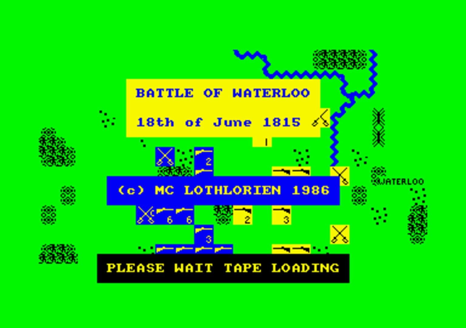This was the first in Lothlorien's Warmaster series of Strategy wargames and re-creates the epic battle in 1815 when Napoleon met his final defeat at the hands of a combined British, Dutch and Prussian army at Waterloo. In the game, you command Napoleon's forces against the combined Anglo-Dutch army of Wellington (controlled by the computer). The computer also controls the Prussian forces, which arrive at a later phase of the game. Your objective is to rout the Anglo-Dutch army at Waterloo, while leaving enough men to deal with the Prussian threat coming from Ligny. Infantry and cavalry units are available for both sides (no artillery), each with varying degrees of strength and morale. Terrain effects play an important role in the effectiveness of units - the Anglo-Dutch forces, for example, occupy ridges and farmhouses which increase their defensive capabilities.