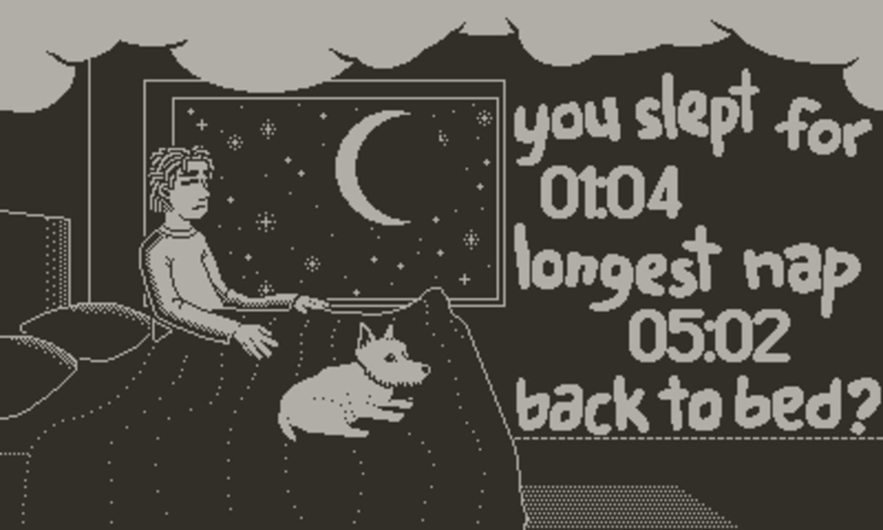 As you fall asleep you must fight off Horu who is adamantly trying to wake you up! As the sand flows through the hourglass the morning quickly approaches.