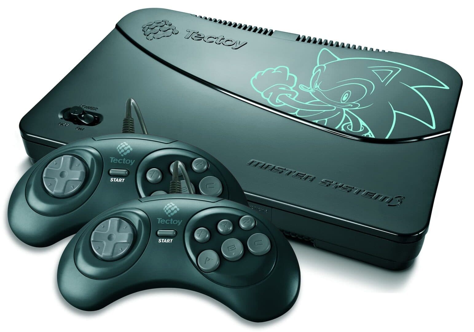 The Master System 3 is a console released by Tectoy exclusively in Brazil in 2008. It is a continuation of the long-running Sega Master System line seen in the country, succeeding the line of "Master System 3 Collection" consoles (which in turn followed the "Master System III Compact"). Like the last two models of its predecessor, this Master System 3 lacks a cartridge slot, relying solely on built-in games. It has a shorter name and also opts for a radically changed design over previous consoles, presumed to be unique to Tectoy products. Internally, it is likely the same as the Master System 3 Collection with 131 games, since they have the same menu saying "Master System 3 Collection 131 Super Jogos" and share the same list of games. The Master System 3 comes with 131 built-in games (or so it claims), the same number as the last Master System 3 Collection console to be released. It also comes with two Sega Mega Drive-style six button control pads which plug into two DE-9 ports, although most of the buttons on the pads are redundant as the console has no built-in Mega Drive games. In order to count 131 games, Pense Bem counts as 10 and 20 em 1 counts as 20 games.