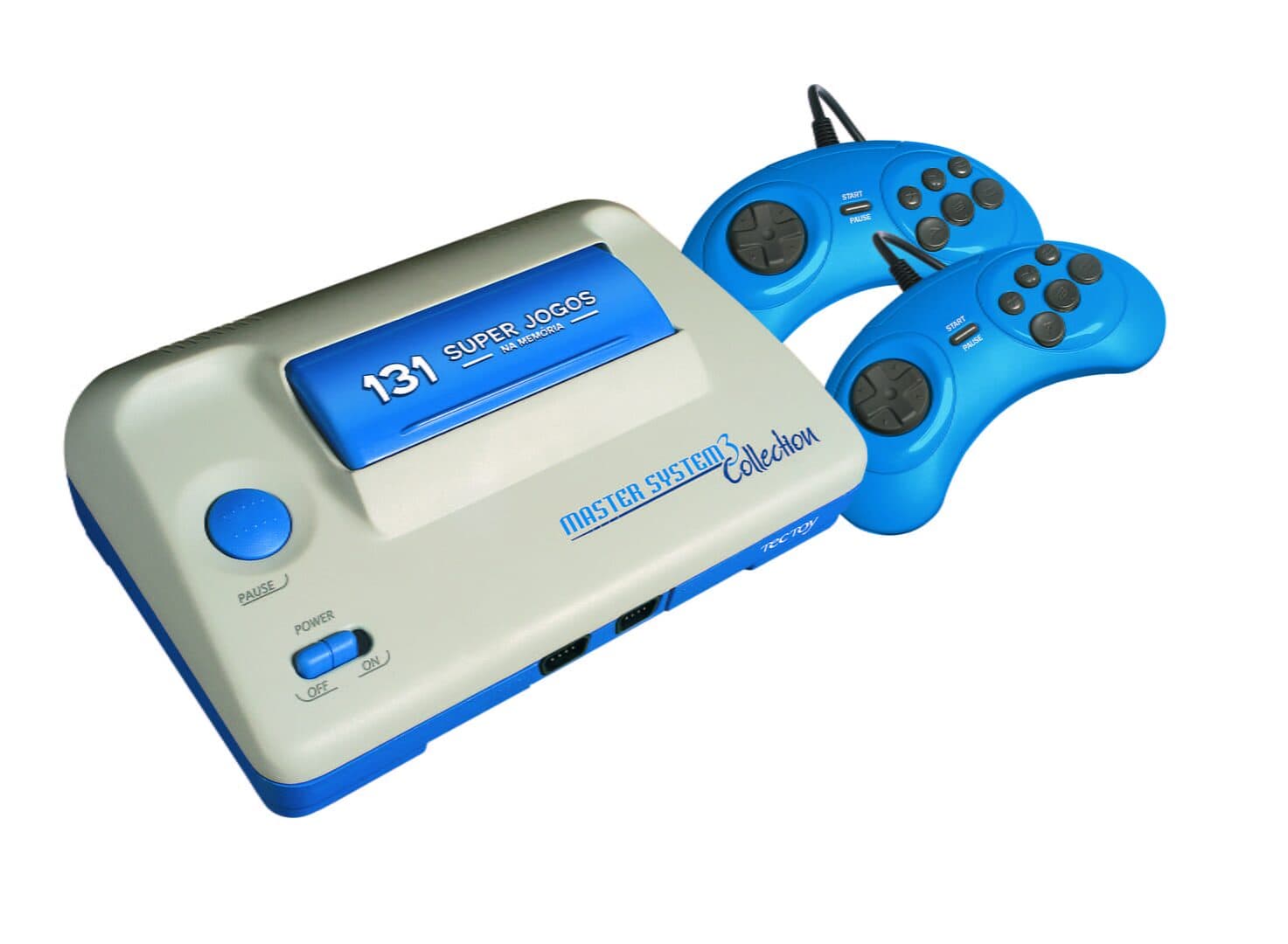 The Master System 3 Collection from 2007 is a version of the Sega Master System released by Tectoy exclusively in Brazil in 2007. While similar in apperance to previous units (sharing a plastic shell with the redesigned Master System II, dating back to 1990), this version lacks support for game cartridges, meaning only the "131" built-in games are playable. The cartridge slot cover still exists, but if opened it will reveal an empty space. Tectoy would abandon this design with the release of the Master System 3 the following year. The total of games considers the following bundles: 20 em 1 as 20 games, Pense Bem as 10 games and Astro Warrior/Pit Pot as 2 games.