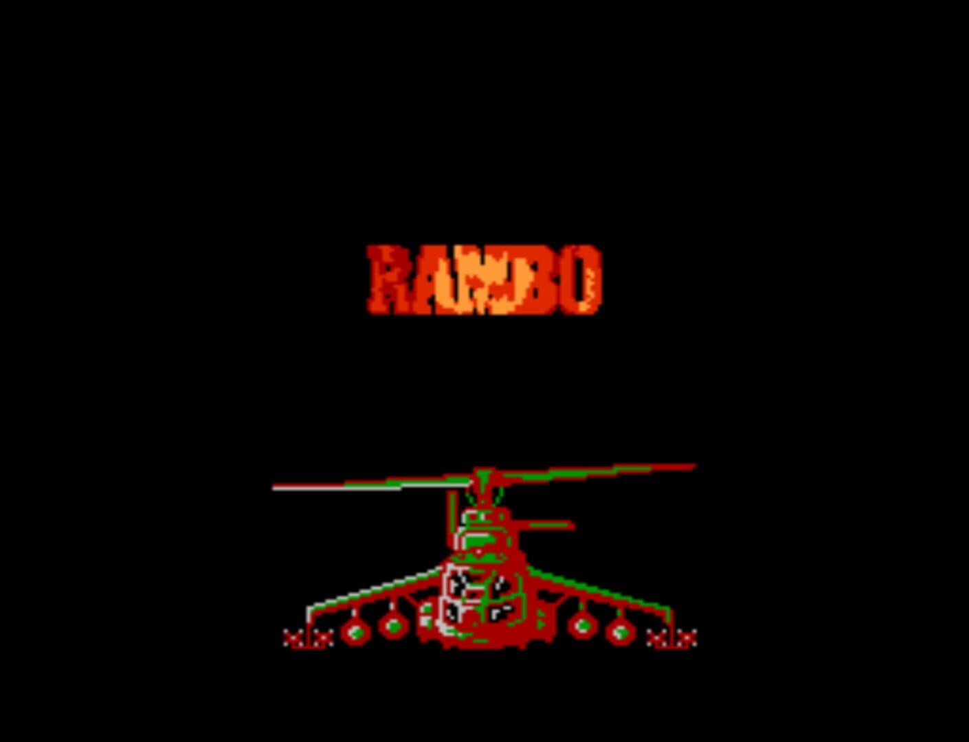 Rambo is a side scrolling platform game where the player controls Rambo with his mission to Vietnam. The game starts at the military base before getting sent to Vietnam. In Vietnam, Rambo has to fight animals in the jungles, swamps, and caves like wasps, snakes, fish, tigers, bats, spiders, birds, apes and flamingos. Before making his way to the POW camp he has to fight guards and mercenaries that can kick and shoot him, all wearing different color shirts depending on how powerful they are. The game also requires the player to navigate a complex map requiring the player to find North and South points on the ground to go up and down levels as well as East and West by moving Rambo to the edge of the screen. There are 6 different weapons that Rambo can pick up that are knife, throwing knife, bow and arrow, bow and exploring arrow, gun, and hand grenade. All the weapons but the knife has limited ammo which is collected from killed enemies. There is also health vile that restores health as well as mission specific items that Rambo must find to complete some missions. The game uses password save that can be retrieved when talking to any person.