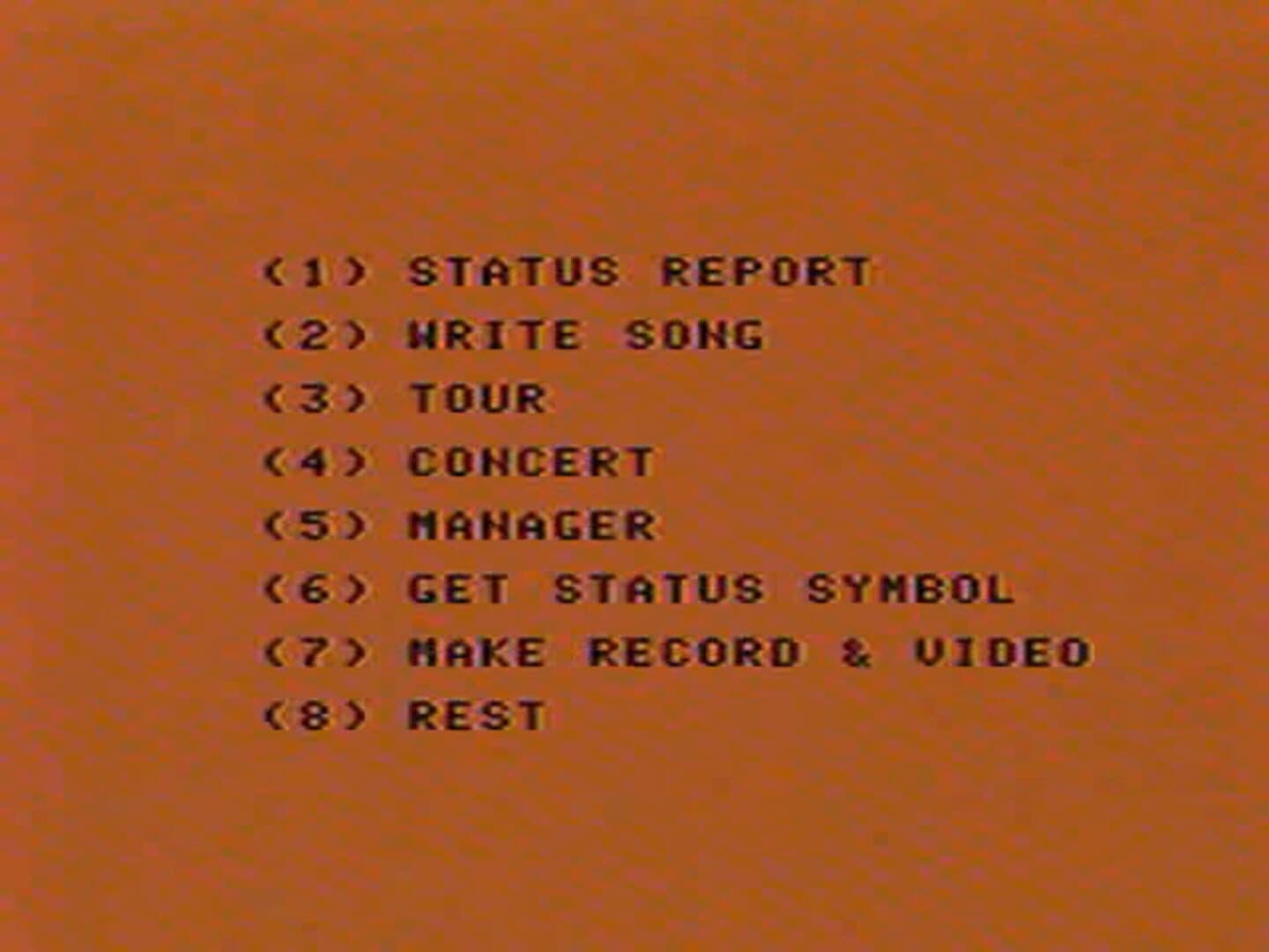 In this brilliant text and graphics game, you start with a guitar, a few bucks and enough raw talent to sit in with the Stones or the Police. Now you've got some big decisions to make as you pick one of three levels and let IT'S ONLY ROCK 'N ROLL take you down a whirlwind road seeking the unbelievable wealth, status and popularity points you'll need to succeed. If you're really good if you can avoid exhausting tours, bad managers. lousy material and too much fun — if you can keep your money, stay happy, and interpret the record charts and newspaper headlines — you'll be the all time reigning KING OF ROCK AND ROLL! Fail and you'll be playing the opening act blues. But whether you end up a superstar or a has-been, ITS ONLY ROCK 'N ROLL AND YOU'LL LIKE IT! LOVE IT! YES YOU WILL!