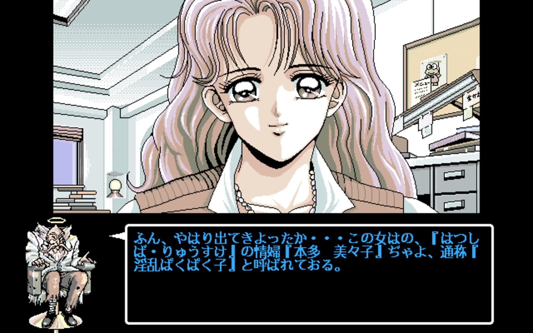 Like its predecessor, De-Ja II is a Japanese-style adventure. The interface has been enhanced compared to the first game. Most of the commands are still done via the extensive verb menus and object sub-menus; once again, it is usually necessary to use those commands several times in order to gain new information and thus advance the story. However, in certain places, icon-based interface becomes available, with point-and-click interaction. The icons include traditional talking, touching, as well as less common commands such as hitting, and even an icon depicting a condom, for... err... scientific activities that are closer to anatomy than archeology.