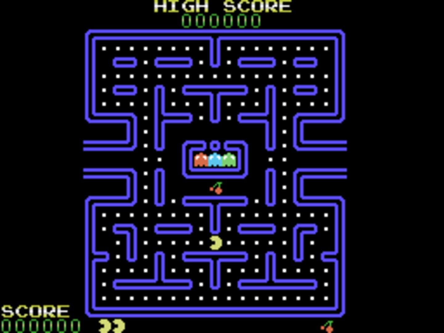 DacMan is an attempt to bring a version of Pac-Man to the ColecoVision. The game looks similar to Pac-Man but only has three ghosts. The game play is the same. Move about the maze, eating all the dots and avoiding the ghosts. If you eat a power pellet, the ghosts turn blue then you can eat them for points. Also on the cartridge, starting with version 1.3, is a hidden game called DacPong!. This is just like Pong except the ball is the Pac-Man character.