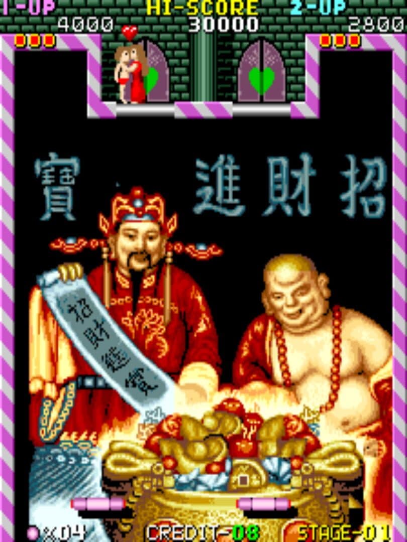 Breakout-style game by SunA Co. that features several famous arts in the background (some with nudity) and some well-known songs such as "Chorando Se Foi"/"Lambada" and "Ode to Joy". As you progress through the stages, the player will also come across bizarre bosses, such as a clown's head with stretching arms.