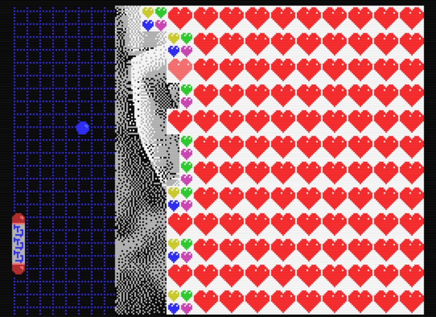 An adult game for the ColecoVision. The gameplay is similar to Arkanoid but vertically and gradually shows an erotic background image when the blocks (hearts) disappear. There are four volumes, each one of them differs only in the image it shows in background.