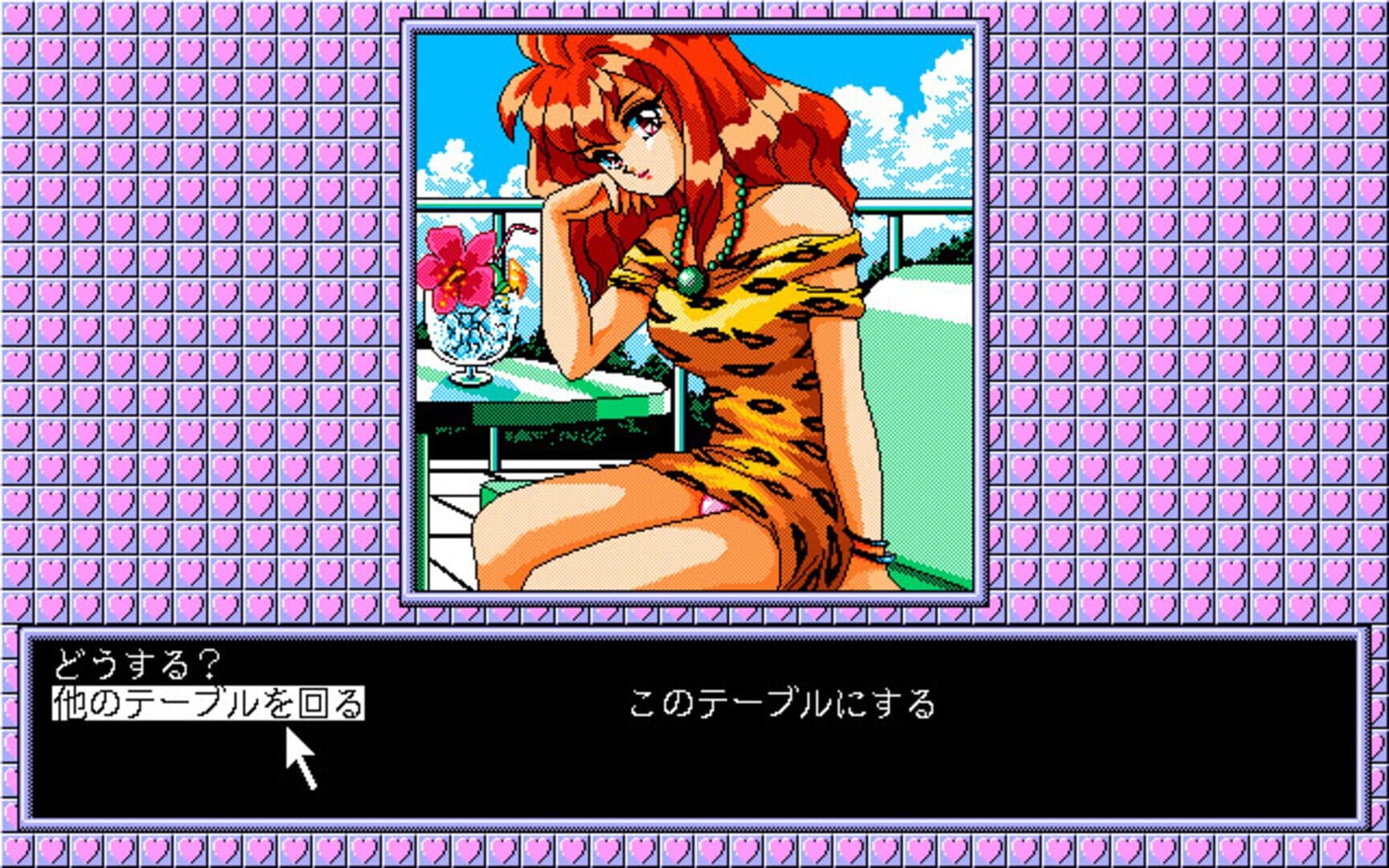 The third in the Can Can Bunny series, Can Can Bunny Spirits deals with a nameless hero (the player has to give him a name) who is - in accordance with Can Can Bunny tradition - a lonely guy who can't get a girlfriend. One night he sits at home and stares at the moon. Suddenly, the magic fairy Ariko appears in front of him and gives him... no, this time not the Magic Book, but a Magic Crescent! With the help of this crescent, the hero can turn into totally different young men - which will naturally increase his chances in impressing girls and ultimately having sex with them. Can Can Bunny Spirits is much less of an adventure and more of a strategy game than its predecessors. Success depends even more on the preparations before the actual decisive stage. There is also extensive customization in this game. In the beginning, the hero chooses what he wants to be like, which includes age, height, blood type, and other parameters. Then Ariko introduces several girls to him, of which he has to choose one. Afterwards, it's a matter of asking the right questions and giving the right answers, combining knowledge of the girl's preferences and of the character's statistics. Each girl has a "love meter that can be raised or lowered depending on the player's strategies, and once it is full, the hero can have his way with the girl.