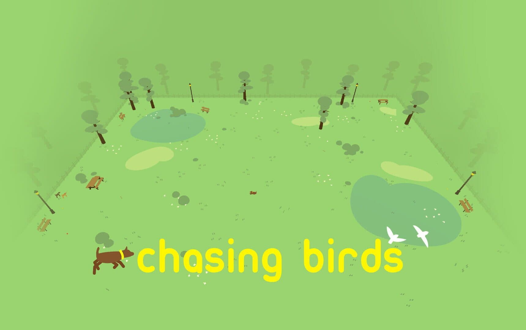 Become the king of the dog park! Chasing Birds is a relaxing, exploration game with no set objective. Explore the dog park by running around, barking, chasing birds or just take some time to lay down and relax.