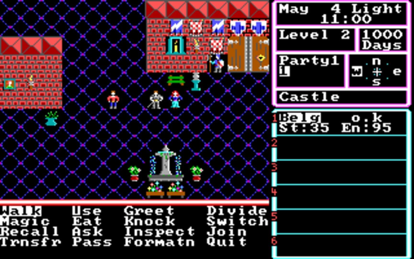 The Magic Candle is best described as an Ultima clone. Its a top-down party-driven RPG. The plot revolves around you (Lukas) and your party of intrepid adventurers, whose task it is to seal the demon Dreax within the Magic Candle (which is burning down, and when it does, he gets released). The game has 3 difficulty levels (changing the number of 'days' you get to complete the game in.) A lot of travelling, dungeon-crawling, town-exploring, and especially, lots of conversing with NPCs.