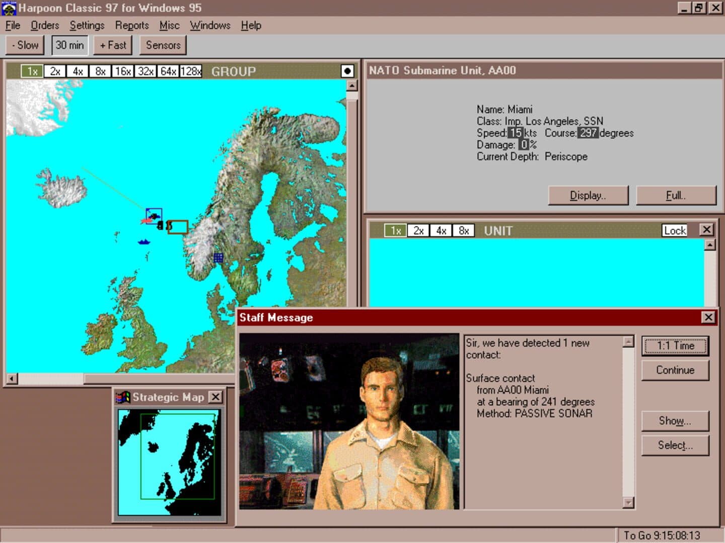 Harpoon Classic '97 is a revised version of traditional Harpoon Classic which is in turn, based on Larry Bond's original and very popular Harpoon board-game from 1980. The core gameplay is top-down (map and menu based) ultra-realistic strategic naval warfare wrapping around scenarios in 4 different theatres (North Atlantic, Greenland/Iceland, Indian Ocean, and Persian Gulf/Mediterranean).