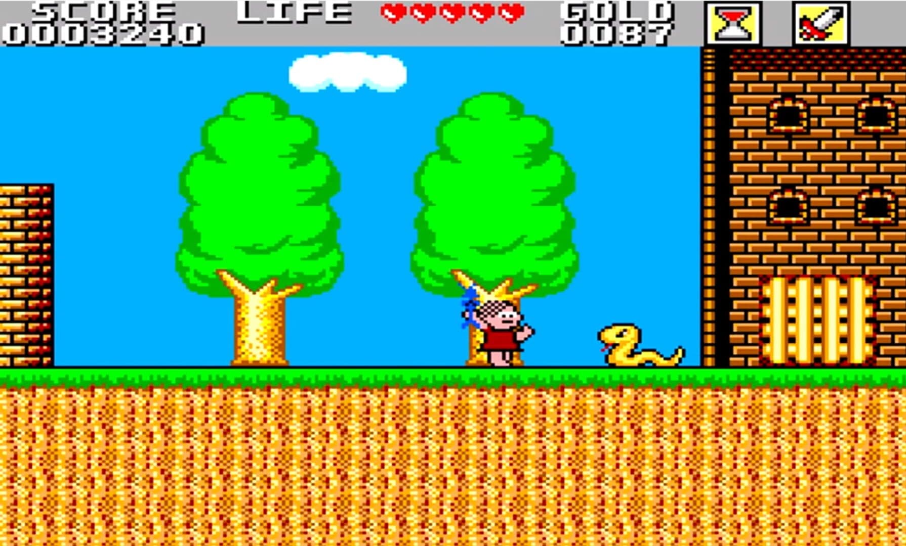 Monica at the Castle of the Dragon is a Sega Master System game released by Tec Toy in 1991, starring the character of comics, Monica. The game is an official graphical and textual reprogramming made by Tectoy in partnership with Maurício de Sousa Productions and authorized by Sega of the original game Wonder Boy in Monster Land. The game is a Platformer in which the player controls Mônica, armed with her stuffed rabbit, Samson. Monica has to go through twelve stages, each with monsters, items and its own scenarios.