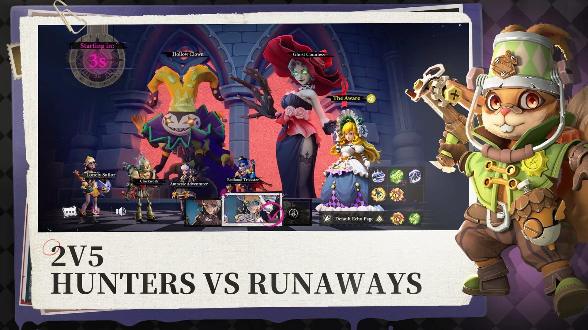 Sanity Chase is a 2v5 asymmetrical competitive game. Here, you can enjoy our unique art style, engaging 2v5 gameplay, and the excitement of playing with friends. Welcome to the lost kingdom! Are you ready?