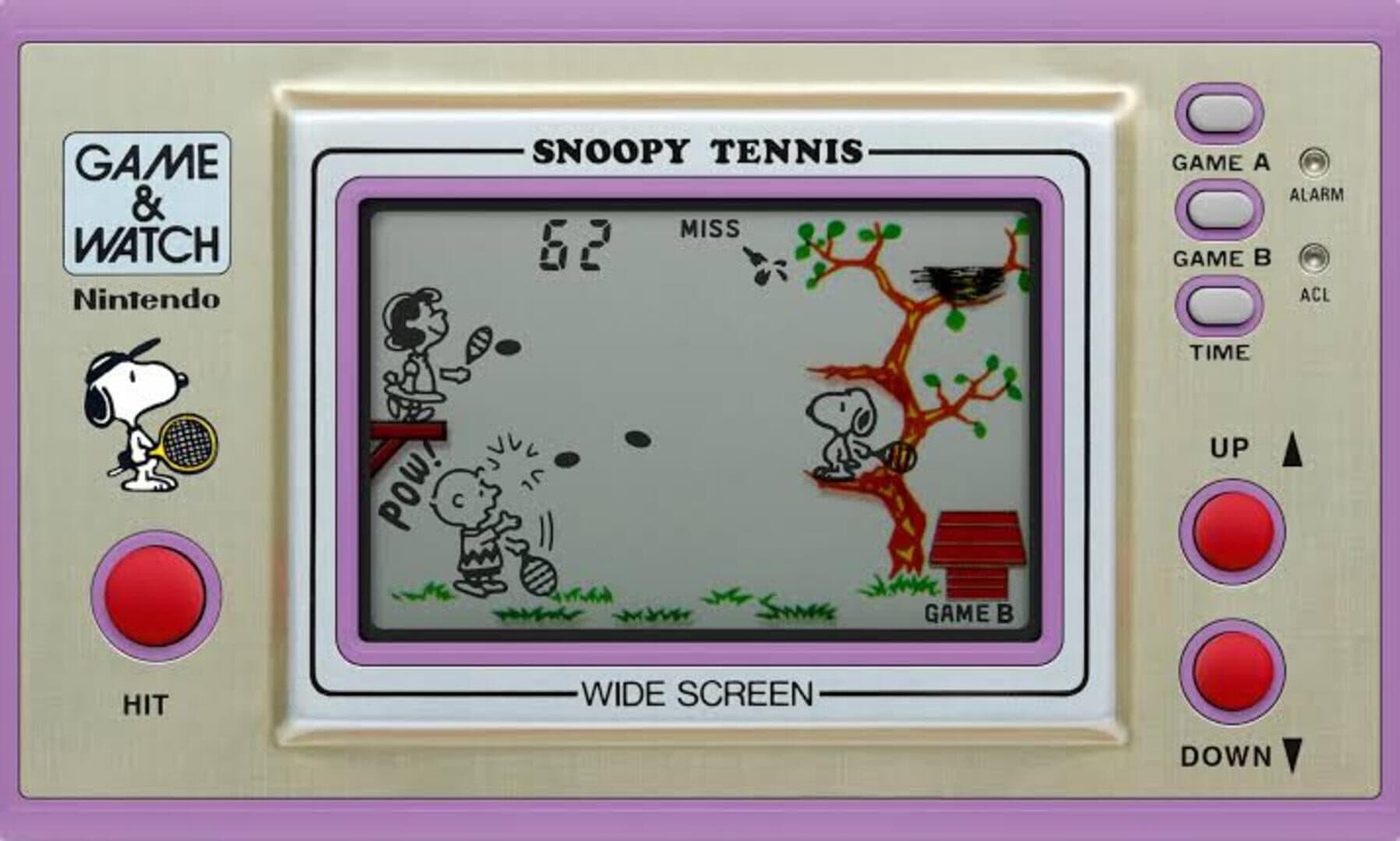 Snoopy Tennis is a Game & Watch video game released in 1982 by Nintendo. The game was very successful, perhaps due to the Snoopy label, with Nintendo producing an estimated 1,200,000 worldwide. In the game, you control Snoopy, moving him up and down to make him hit the oncoming tennis balls with your racket. It was released on the Wide Screen format. A version of the game was released as a keychain title under the mini-classics label.