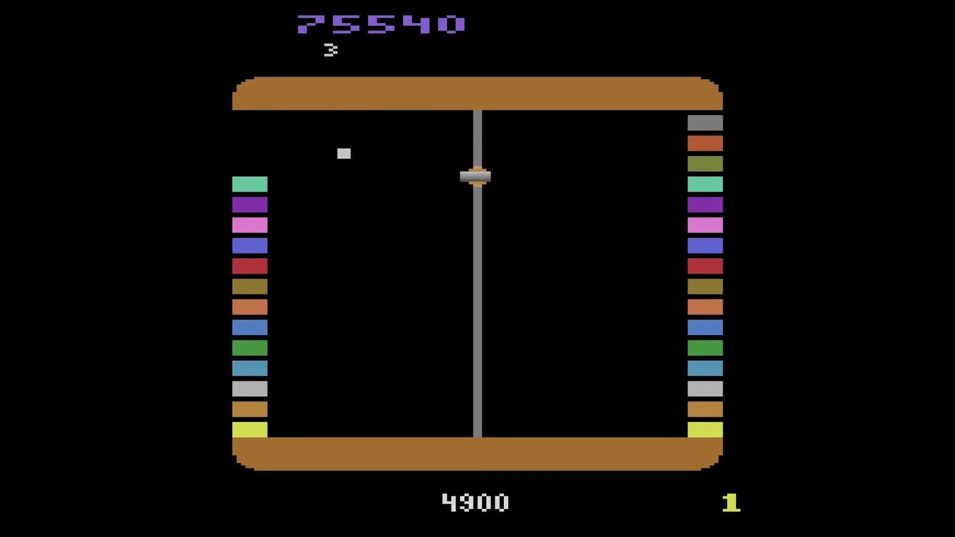 From the left and right sides of the screen colored columns stretch towards the center of the screen in order to connect with their counterpart on the opposite side. The player is at the center of the screen where he can move up and down and has to shoot left and right at the extending columns before they connect.