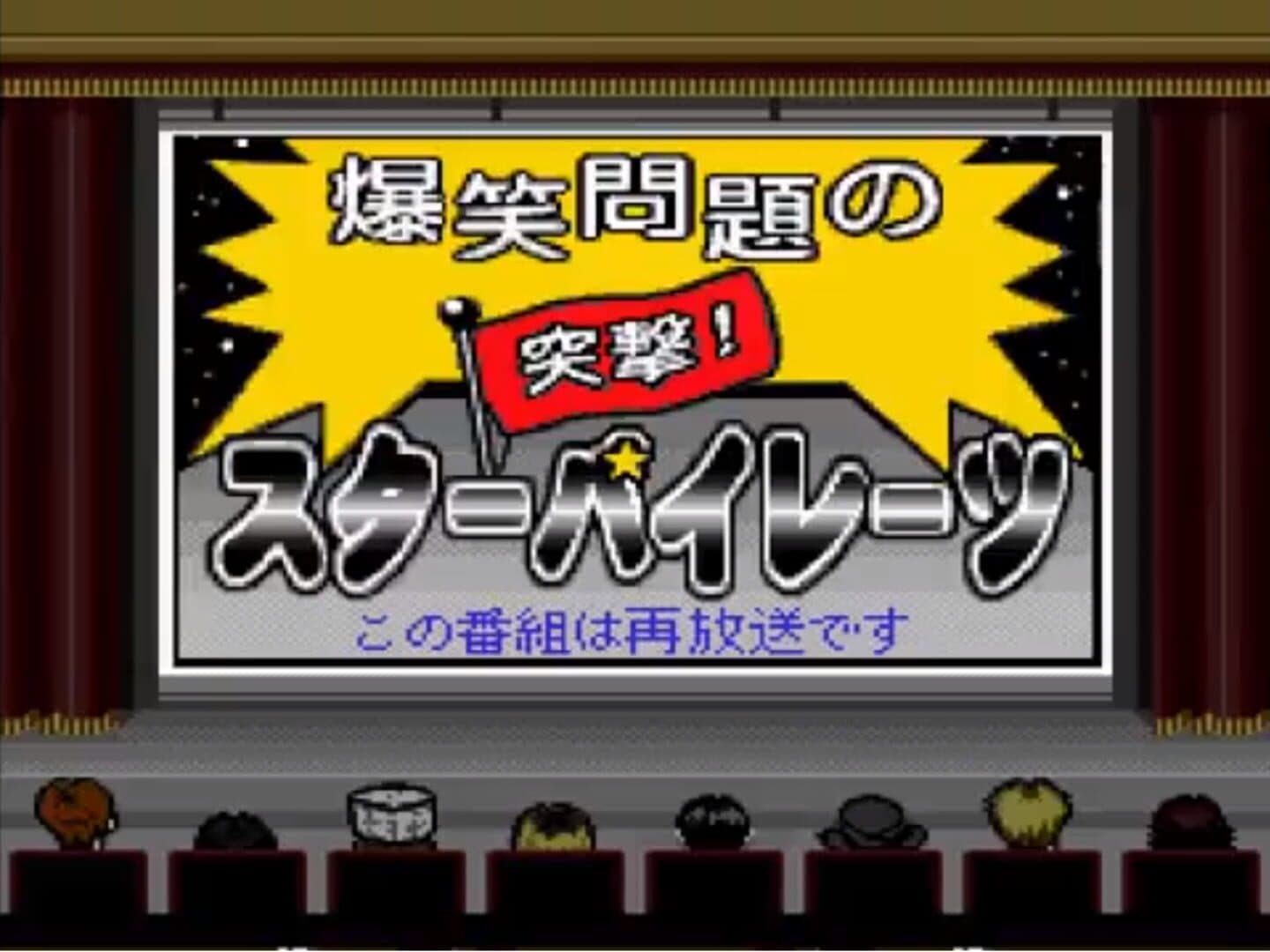 Bakushou Mondai's Assault of the StarPirates is a game released exclusively for the Satellaview (Super Famicom add-on) in Japan. It featured a duo of famous japanese comedians called Bakusho Mondai. It had Soundlink support and was released in four chapters.