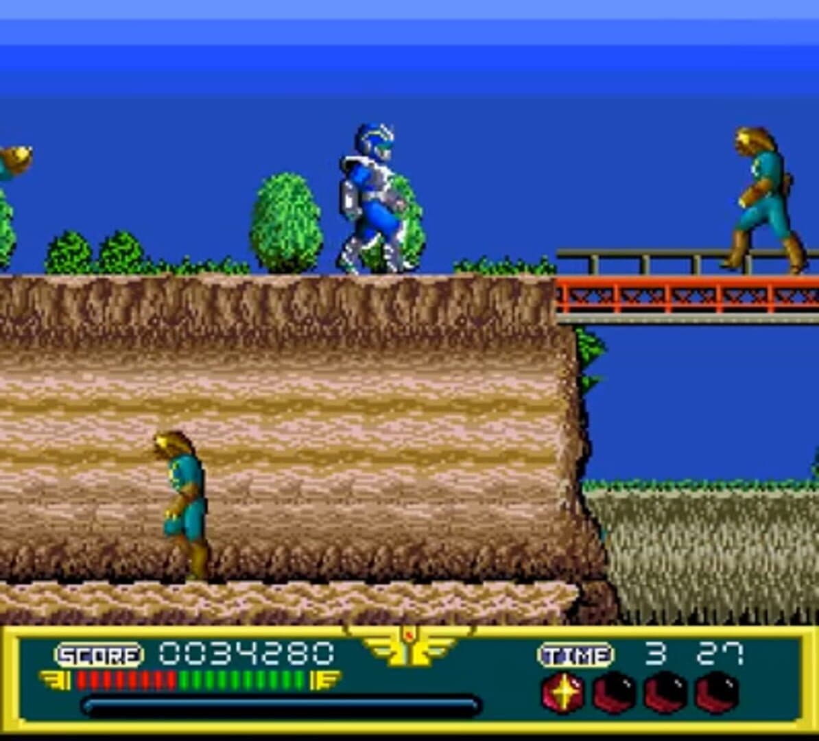 Rolling Thunder-esque platform beat 'em up which gives you the ability to transform into a brightly coloured Power Suit as you fight crime on the streets.