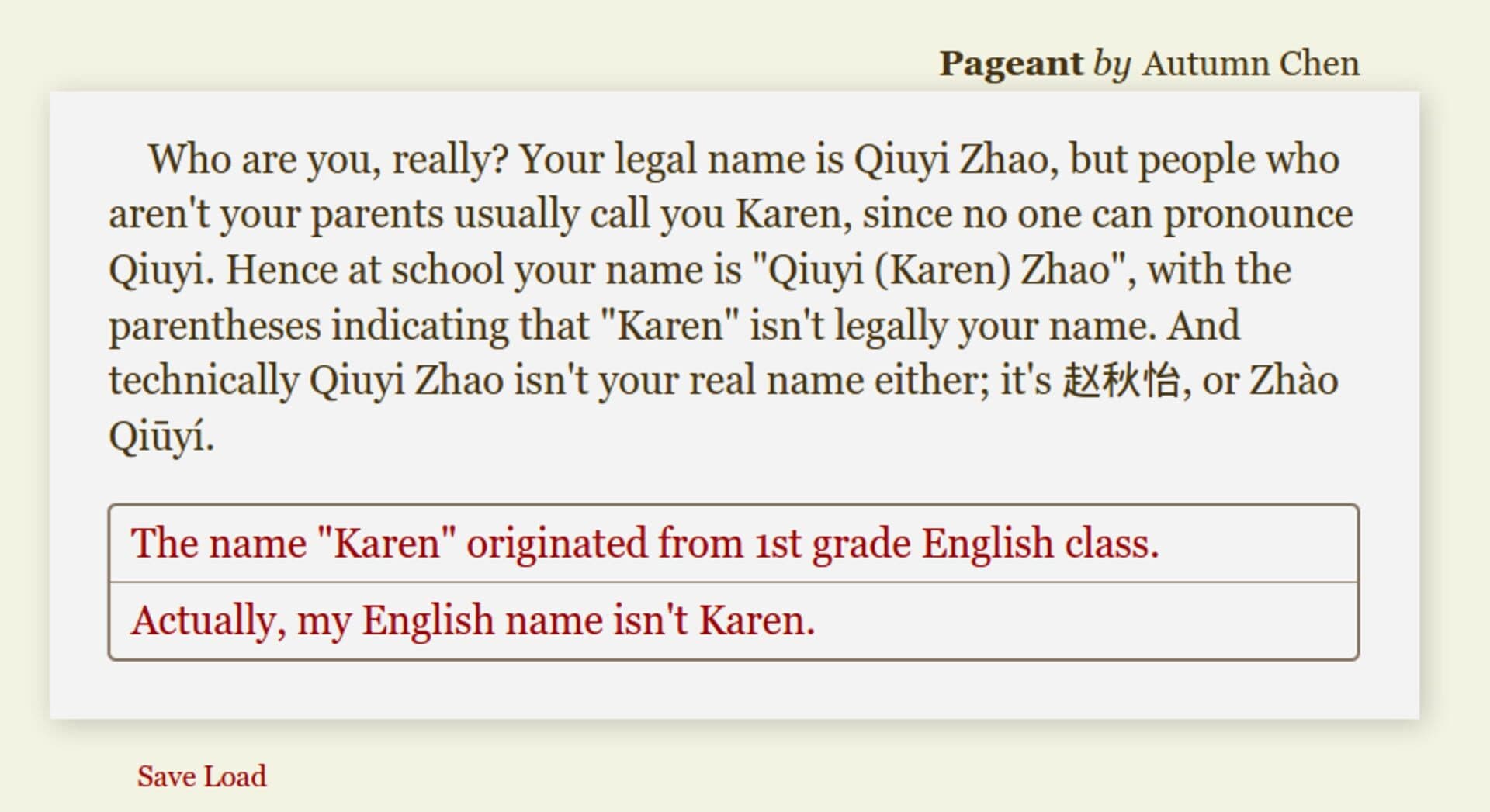 Your name is Karen Zhao, and you’ve just been signed up by your parents for a beauty pageant. You’re not ready, not even close, but you don’t have a choice. But perhaps you can make the best of it. Maybe it’s the one opportunity to make a “hook” for your college application. Maybe you can reinvent yourself, get rid your anxiety and become someone new. Or maybe you can find true love (or some approximation thereof).