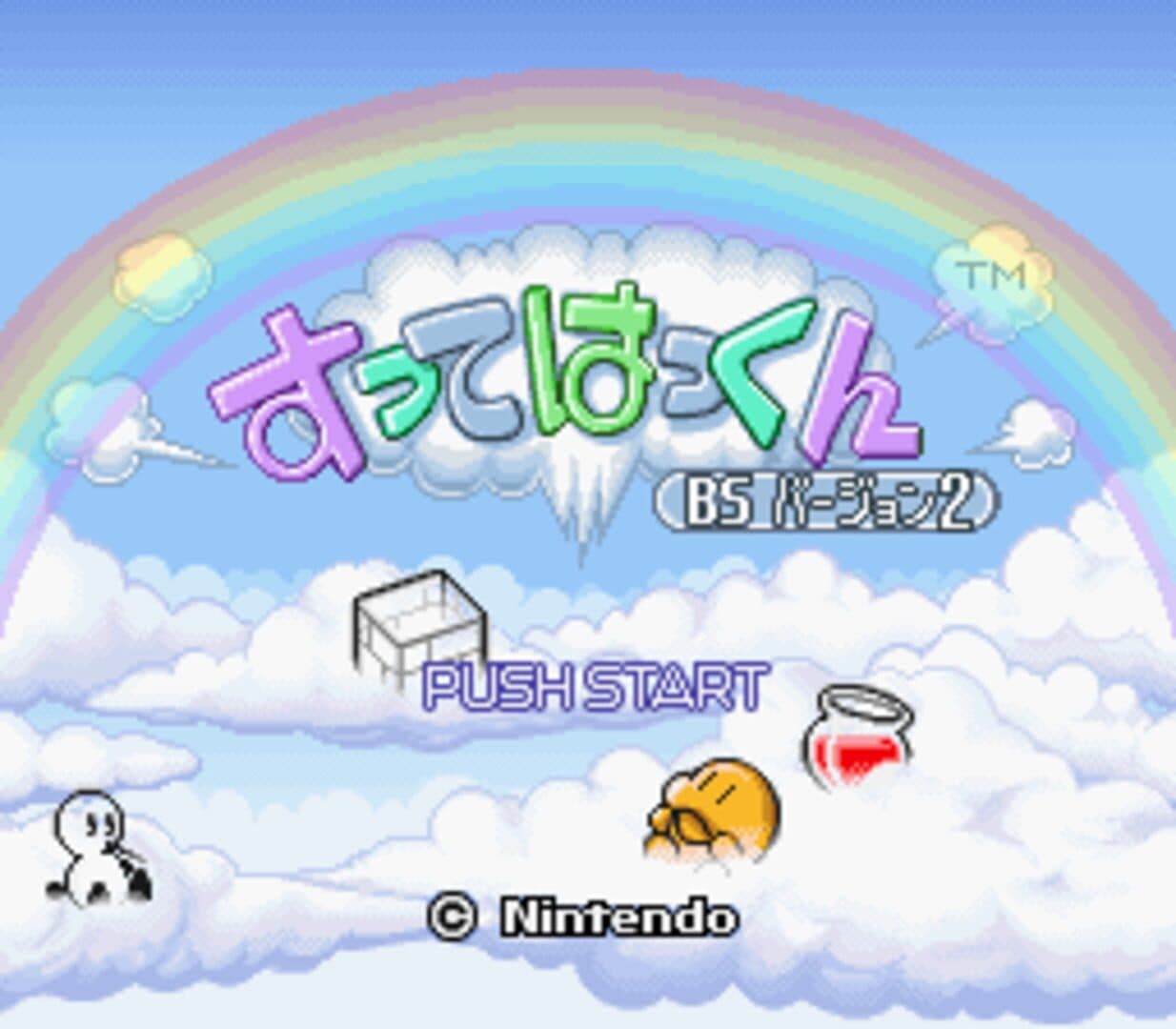 Sutte Hakkun BS Version 2 is a platform/puzzle game that was released in 1998 in Japan. As the game's title implies, it is a sequel of sorts to the earlier Sutte Hakkun (Nov. 1997) and Sutte Hakkun Event Version (Oct. 1997). A later titles in the same series, Sutte Hakkun '98 (Dec. 1998) followed a month after the broadcast of Sutte Hakkun Version 2.