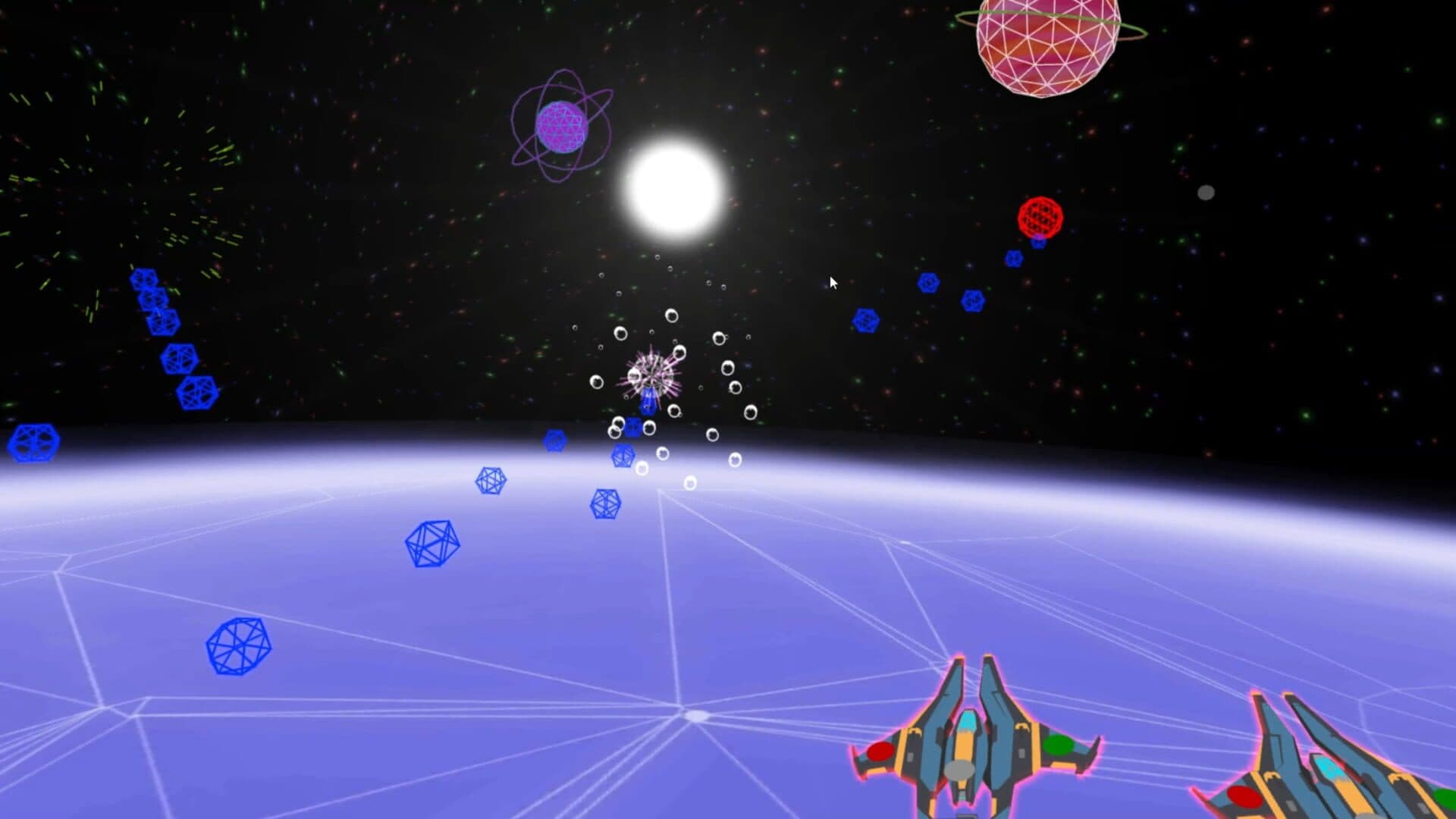An arcade shmup where the music is part of the action Travel across the virtual zone and defend the core by guiding a pair of starfighters through the shoot 'em up action of Rhythm 'n Bullets. Enemies fly in from all sides, diving towards the core in time with the soundtrack. Time your shots to the beat for maximum effect, and grab awesome power-ups to clear the stage. Keep the core safe from danger in the multi-level campaign, and then try to top the leaderboards in endless mode, where the enemies never stop!