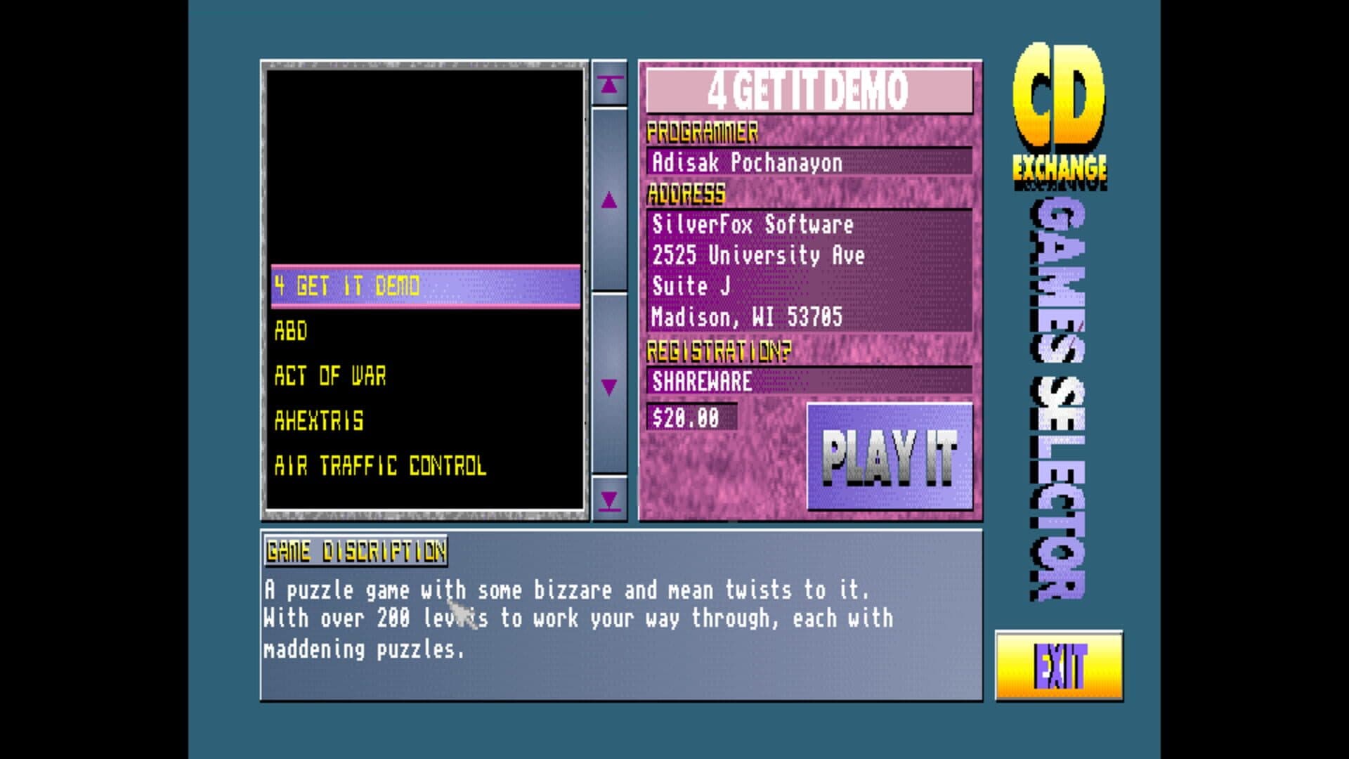 CD EXCHANGE Volume 1 is a ShareWare/Public Domain CD, Containing a vast amount of Software ranging from - Music Modules, Sound Samples, Utilities, Mass amounts of Clip-Art, and 100's Adobe/Compugraphic Fonts, Lots of Games and Graphics. The utilities section has various type of utils ranging from Music to Art to Commodities, Virus Killer, Demo Creators, Business, and more.