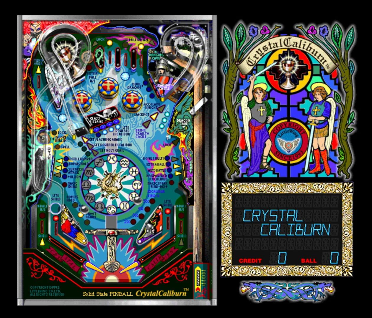 Crystal Caliburn is a digital pinball simulator themed around the legend of King Arthur. It was produced by Japanese developer LittleWing and published in 1993.