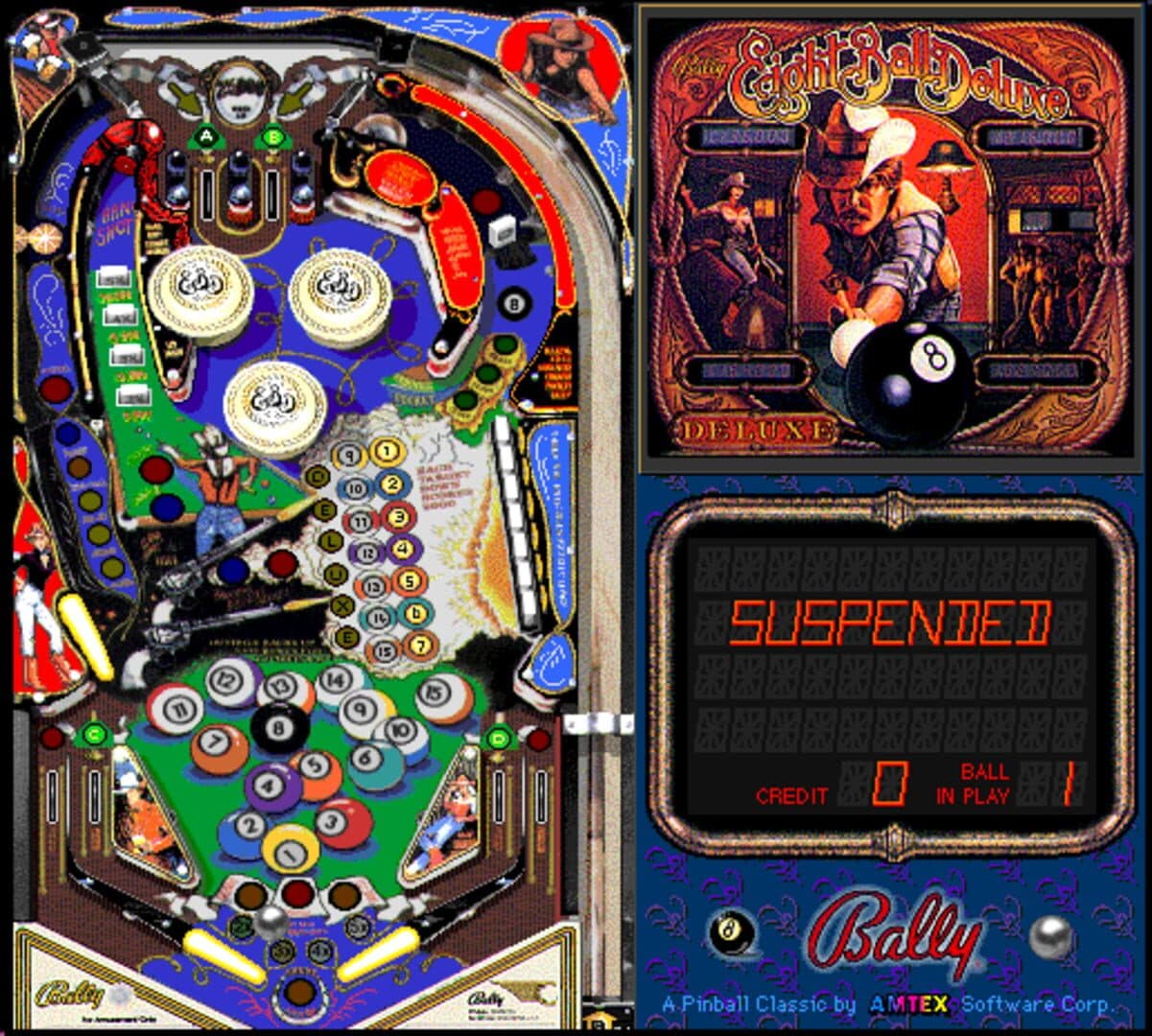 Eight Ball Deluxe is a digital pinball game, adapted from a physical pinball machine manufactured by Bally in 1981. The digital game was mad by Japanese developer LittleWing and released in 1993. The game is themed around cowboys playing billiards.