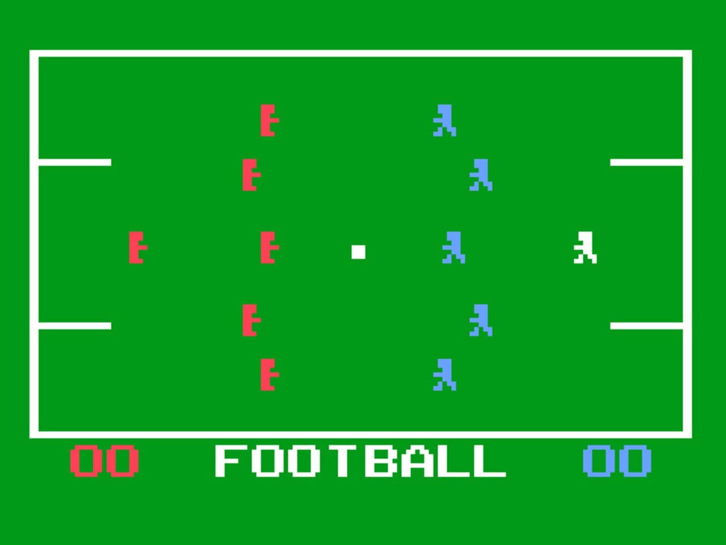 Two titles are available in this cart: Hockey!: five field players and one goalkeeper are displayed at each side of the field. The player closest to the puck will be displayed holding the hockey stick and will be controlled by using the joystick. The goalkeeper will follow his movements. Making body contact will immobilize the players, and they can be separated by using the directional stick. To shoot the puck, the action button must be pressed. The game lasts three periods of five minutes each. Soccer!: five field players and one goalkeeper are displayed at each side of the field. The player closest to the ball will be displayed flashing and will be controlled by using the joystick. The goalkeeper will follow his movements. Making body contact will immobilize the players, and they can be separated by using the directional stick. If too many players get in touch, the game will be stopped. The propelled when a player hits it with head or legs. Pressing the action button when touching the ball will propel it farther. The game lasts two periods of five minutes each.